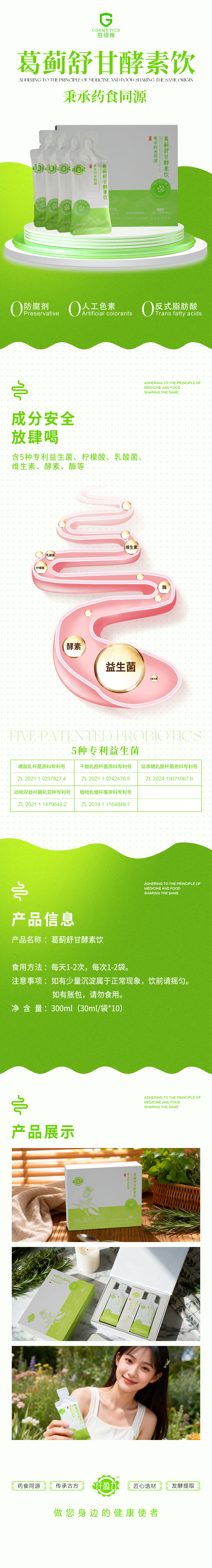 配料:水、植物发酵原液(发酵植物饮品)【水、白砂糖(发酵用)、陈皮、葛根、木瓜、橘红、小蓟、砂仁、甘草、冻干型乳酸菌粉-酵素发酵菌(低聚异麦芽糖,鼠李糖乳酪杆菌JYLR-127,干酪乳酪杆菌L.Casei21,植物乳植杆菌 JYLP-326,嗜酸乳杆菌 JYLA-191,动物双歧杆菌乳亚种JYBR-390)】、梨浓缩果汁、果蔬发酵原液、桃浓缩果汁、三氯蔗糖、复配维生素(维生素B1、维生素B2)、水飞蓟籽油粉、显齿蛇葡萄叶粉