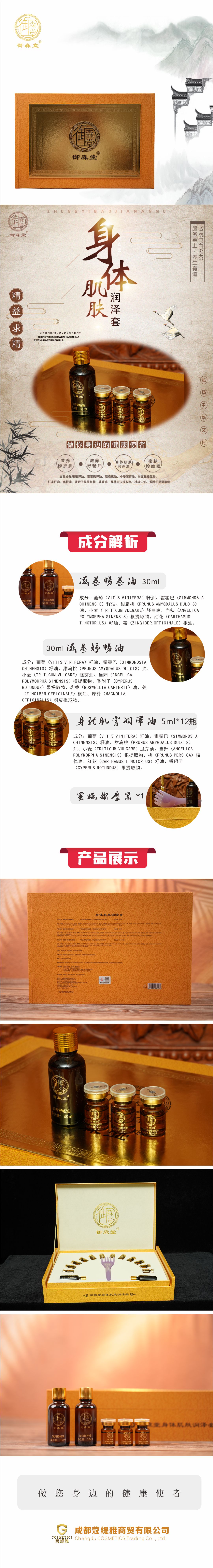 成分:葡萄(VITIS VINIFERA)籽油、霍霍巴(SIMMONDSIA CHINENSIS)籽油、甜扁桃(PRUNUS AMYGDALUS DULCIS)油、小麦(TRITICUM VULGARE)胚芽油、当归(ANGELICA POLYMORPHA SINENSIS)根提取物、香附子(CYPERUS ROTUNDUS)果提取物、乳香(BOSWELLIA CARTERII)油、姜(ZINGIBER OFFICINALE)根油、厚朴(MAGNOLIA OFFICINALIS)树皮提取物。